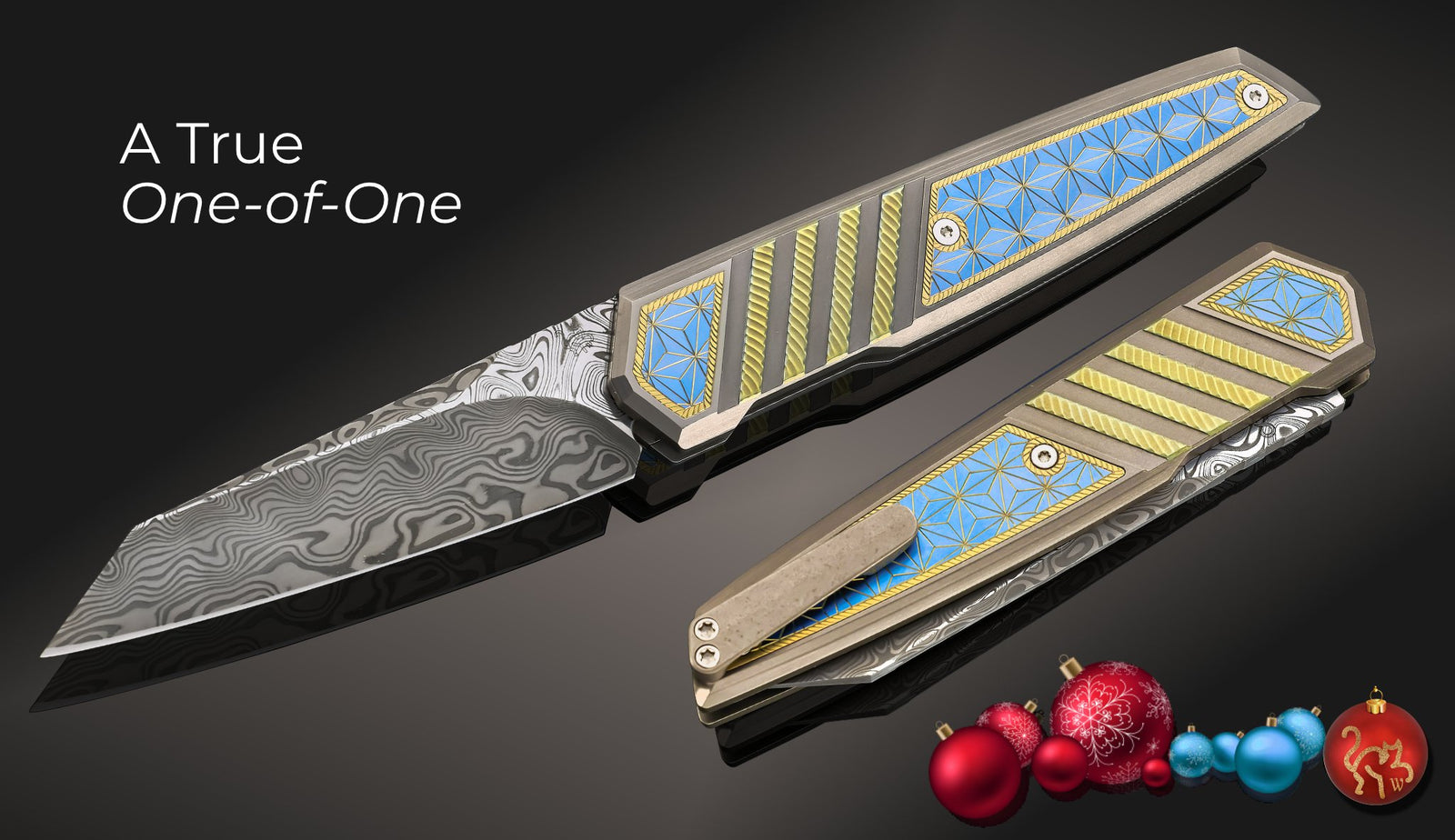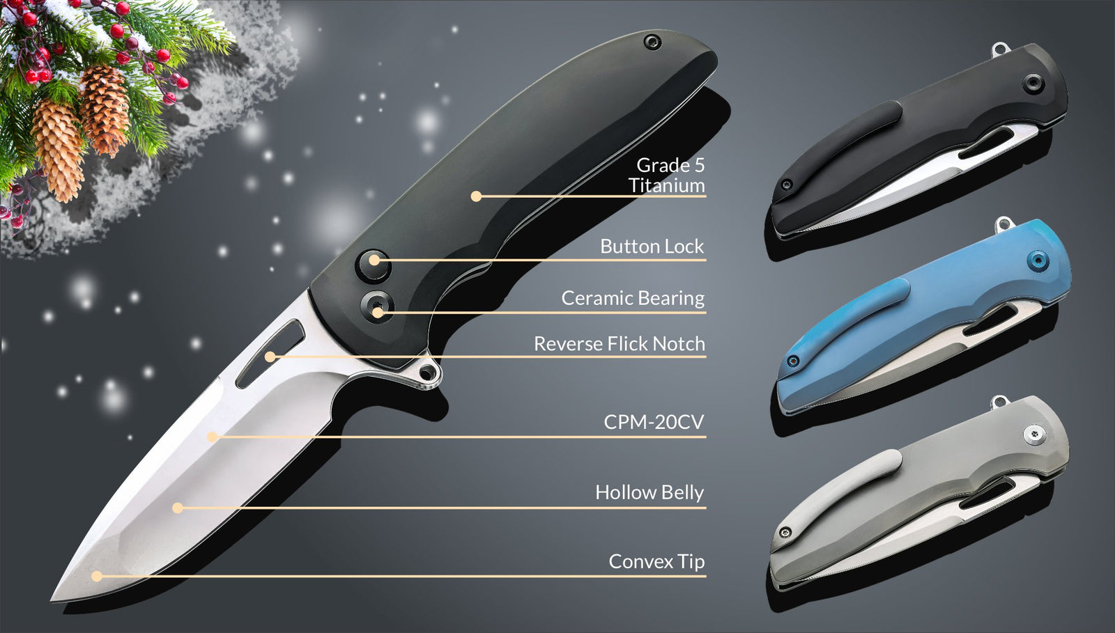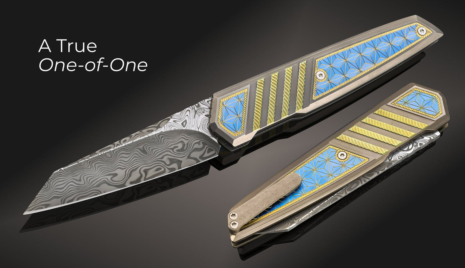 The full titanium-framed knife is an everyday carry (EDC) design that reimagines a classic Barlow with modern industrial cues from the legendary M1911 pistol.