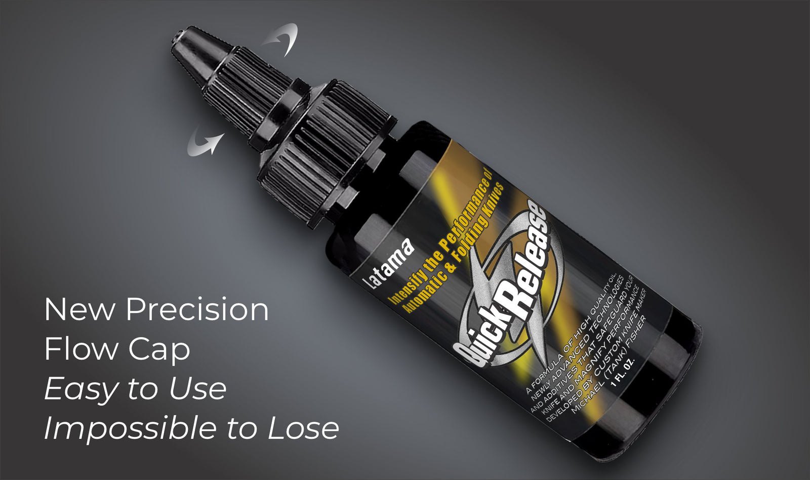 Guns, automatic and folding knives, firearms, fishing reels, tools, anything with moving metal parts will last longer and work better when you Quick Release It through the NEW Precision Flow Cap!