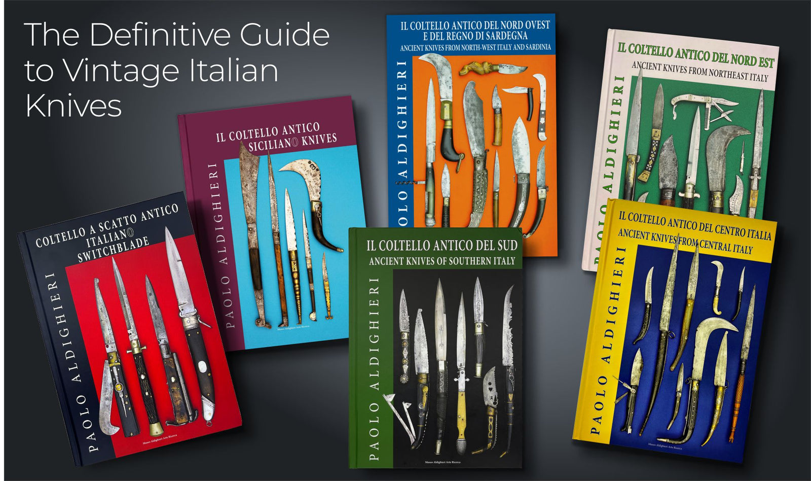 These six volumes were written by Paolo Aldighieri, an avid knife collector who did his homework. Delve into the intricate techniques and cultural significance behind the art of Italian knife-making. They are overflowing with history, facts, and images of some spectacular knives made in Italy, bringing you closer to your Ph.D. in Italian knife history.